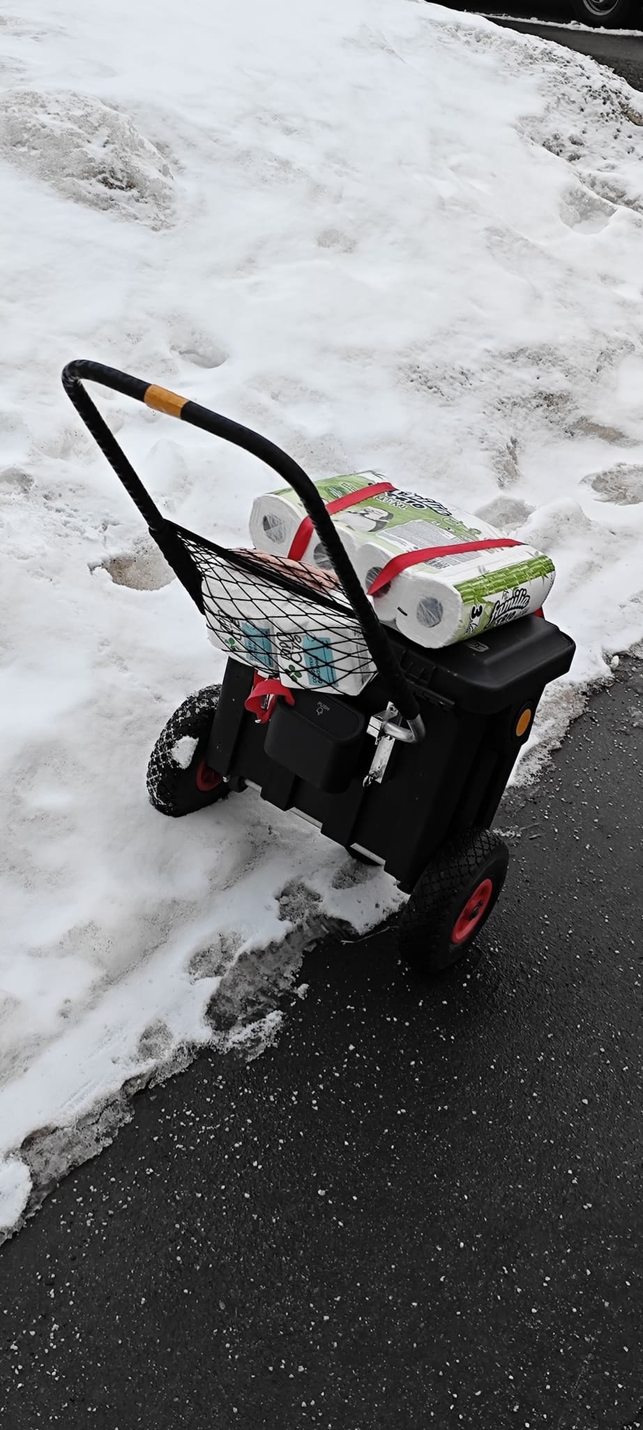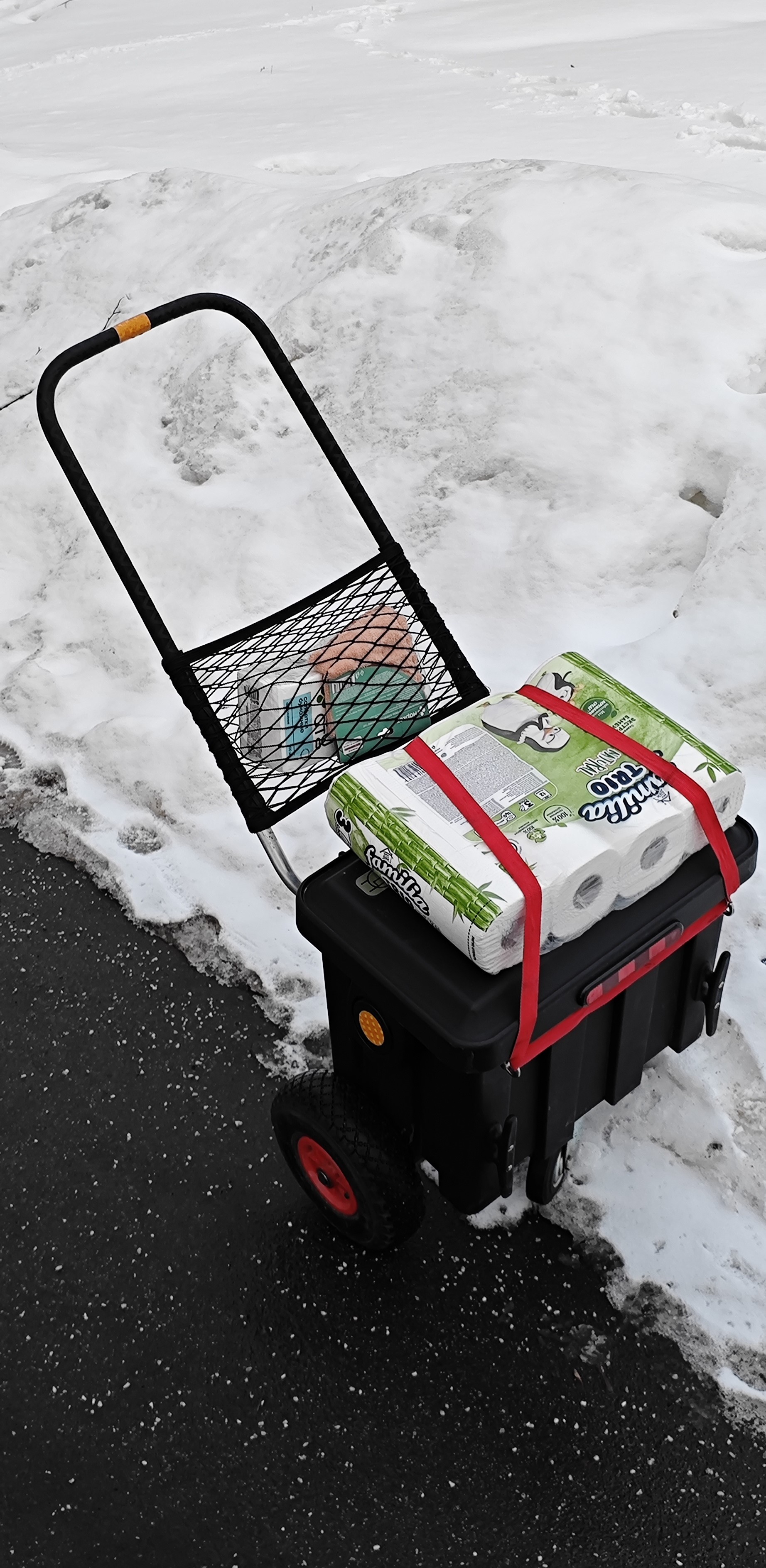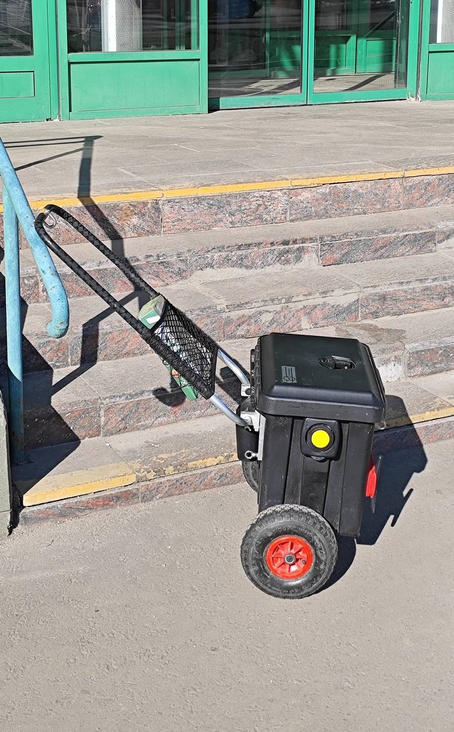может перемещать груз до 100 кг по снегу, лужам и грязи. Одинаково комфортно чувствует себя как в магазине так и на бездорожье