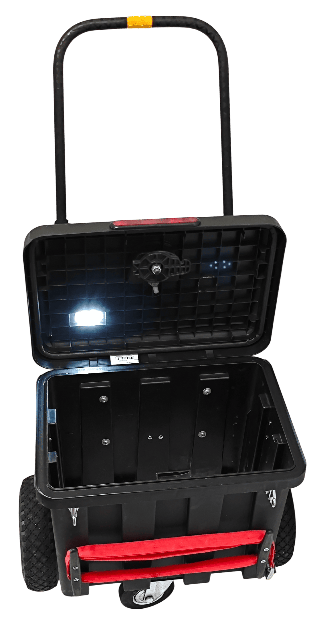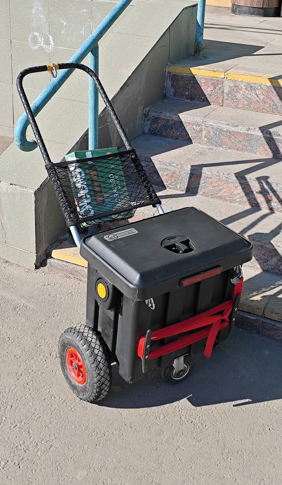 Жёсткий ударопрочный кузов запирается на ключ — вещи в сохранности на рынке, в транспорте и у подъезда. В поездке служит сиденьем или столиком.