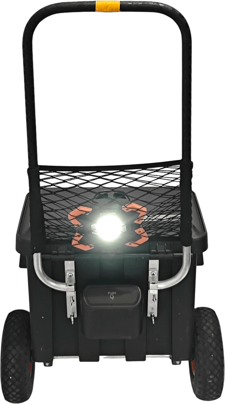 Спектр действия тележки широк от походов в магазин и похода на рыбалку до перемещения запаса боекомплекта по пересечёной местности.