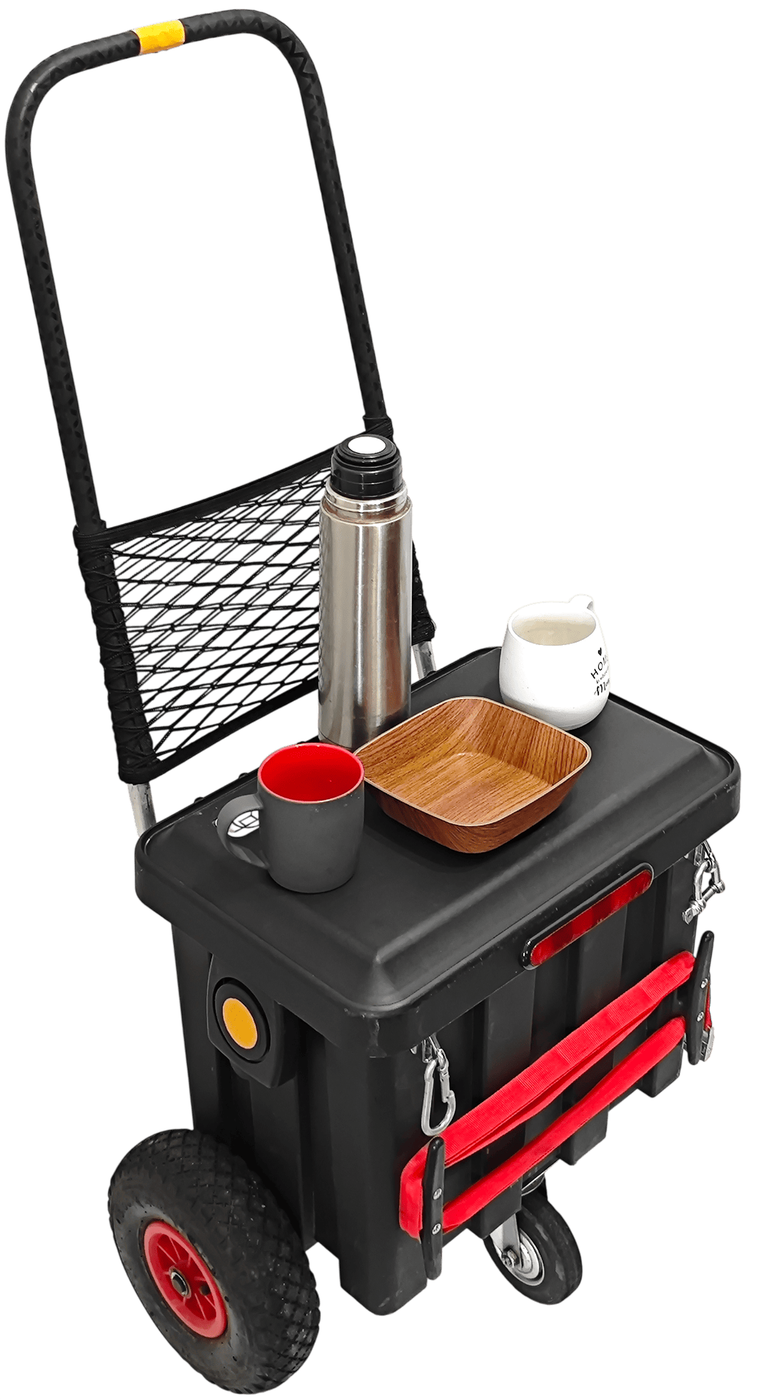 Жёсткий ударопрочный кузов запирается на ключ — вещи в сохранности на рынке, в транспорте и у подъезда. В поездке служит сиденьем или столиком.